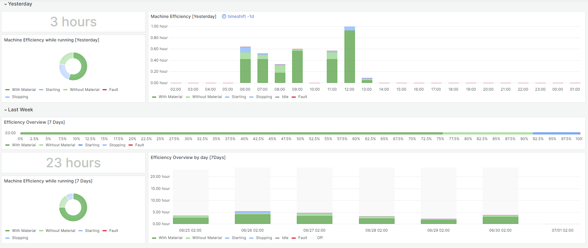 Effizienzberichte weisen auf Leerlaufzeiten und nicht ausgelastete Kapazitäten hin, so dass die Benutzer die Ausfallzeiten minimieren und den Durchsatz maximieren können. - Maschinendaten konsolidieren:
